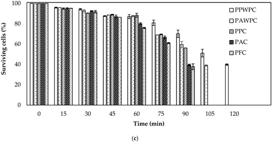| PPWPC—45 °C | 150 | 0.26 ± 0.08 ab | 0.70 ± 0.01 cd |
