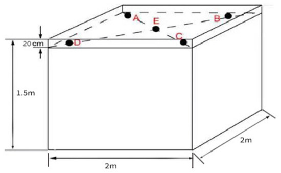 All samples for this study were collected from the top of the cellar at 0 days, 2 days, 4 days, 6 days, 8 days, and 10 days of fermentation. The five-point sampling method was used for sampling. The specific sampling points are shown in Figure 1. The samples collected at each point were mixed and stored in a liquid nitrogen jar.