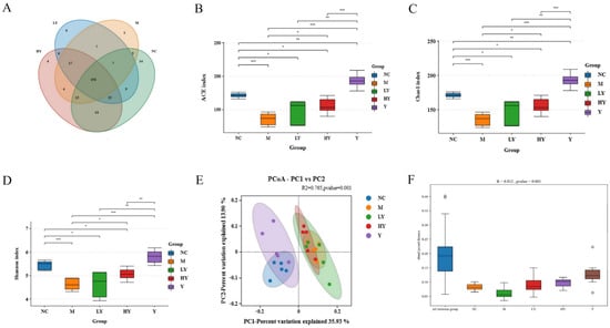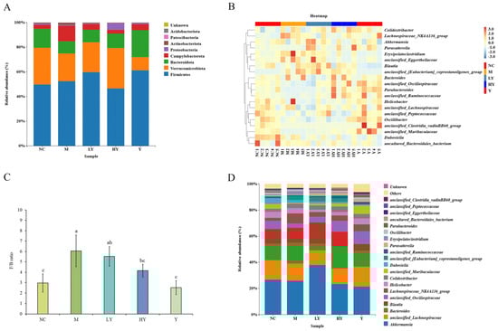 3.4. Effect of LH on the Gut Microbiota Diversity and Composition in Mice