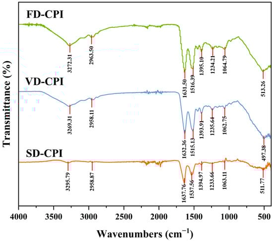 FTIR spectra of FD-CPI, VD-CPI, and SD-CPI.