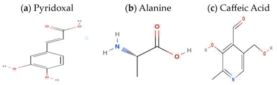 Chemical structures example for (a) vitamin B6, (b) type of amino acid, and (c) type of phenolic compound.