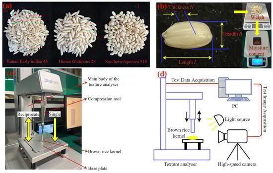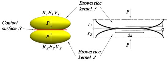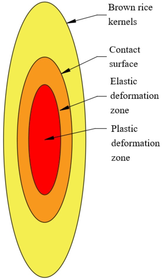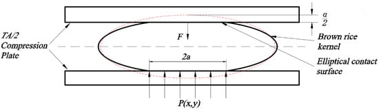 - In this study, an elastic–plastic model of brown rice kernels is established, and equations are derived for the relationship between compression force and deformation in the elastic–plastic compression process of brown rice kernels.
