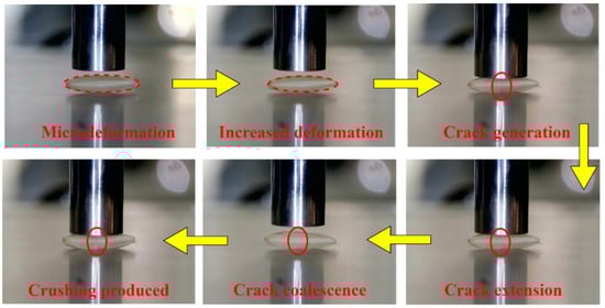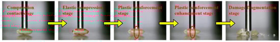 - During the single and continuous compression testing of brown rice kernels, it is difficult to directly observe the stages of elastic–plastic changes and the generation, expansion, and fusion of continuous damage cracks at a macroscopic level. The accuracy of the model could be further intuitively verified if the structural and defective changes within the kernels during the testing process could be subsequently processed via microscopic recording. In addition, dynamic changes occur in the compression contact orientation of brown rice kernels during the milling process, and there are also differences in the moisture content of brown rice kernels. In the future, we aim to continue to combine the elastic–plastic contact theory with the theory of continuous damage to carry out analyses of the damage and crushing characteristics of brown rice kernels under different contact orientations and moisture contents, as well as elucidate the relationship between individual and groups of brown rice kernels under mechanical action, thus providing theoretical references for the damage and crushing mechanisms produced by mechanical action on brown rice.