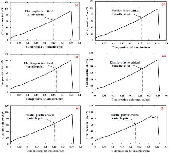 | Elastic–plastic critical force F/N | 63.67 | 70.09 | 74.78 | 70.97 | 68.40 | 61.15 |