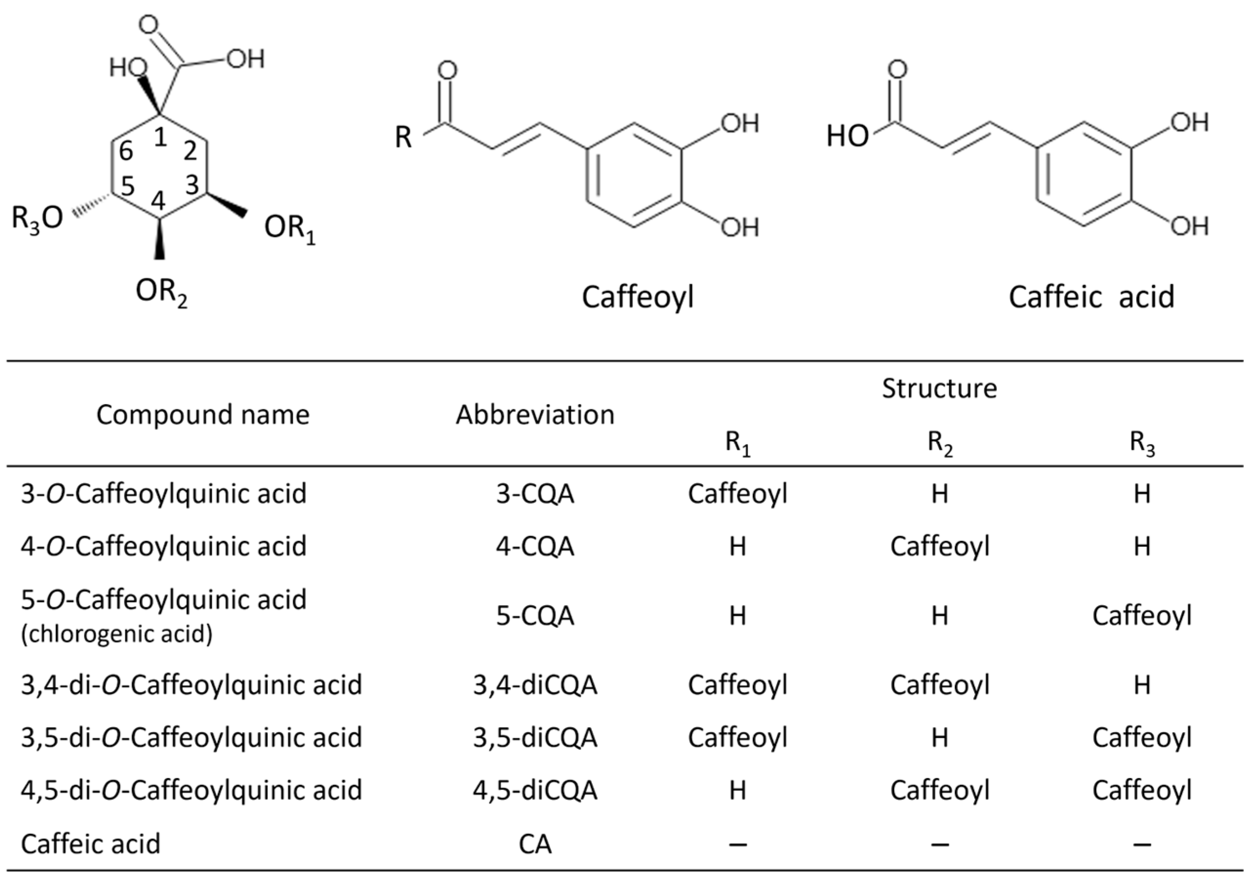 - Liu, W.; Li, J.; Zhang, X.; Zu, Y.; Yang, Y.; Liu, W.; Xu, Z.; Gao, H.; Sun, X.; Jiang, X.; et al. Current advances in naturally occurring caffeoylquinic acids: Structure, bioactivity, and synthesis. J. Agric. Food Chem. 2020, 68, 10489–10516. [Google Scholar] [CrossRef] [PubMed]