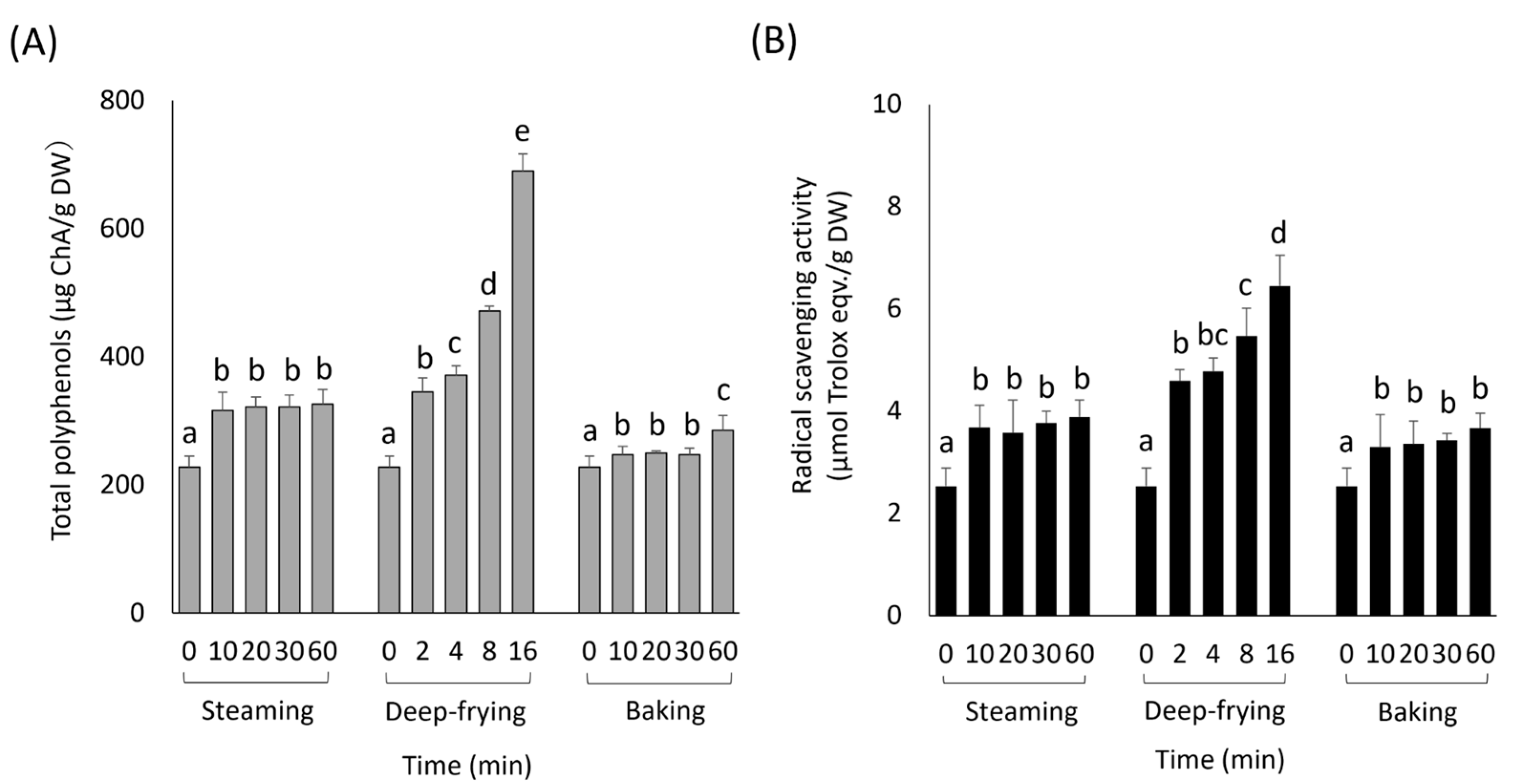 4.2. Effect of Cooking Methods on DPPH Radical Scavenging Activity
