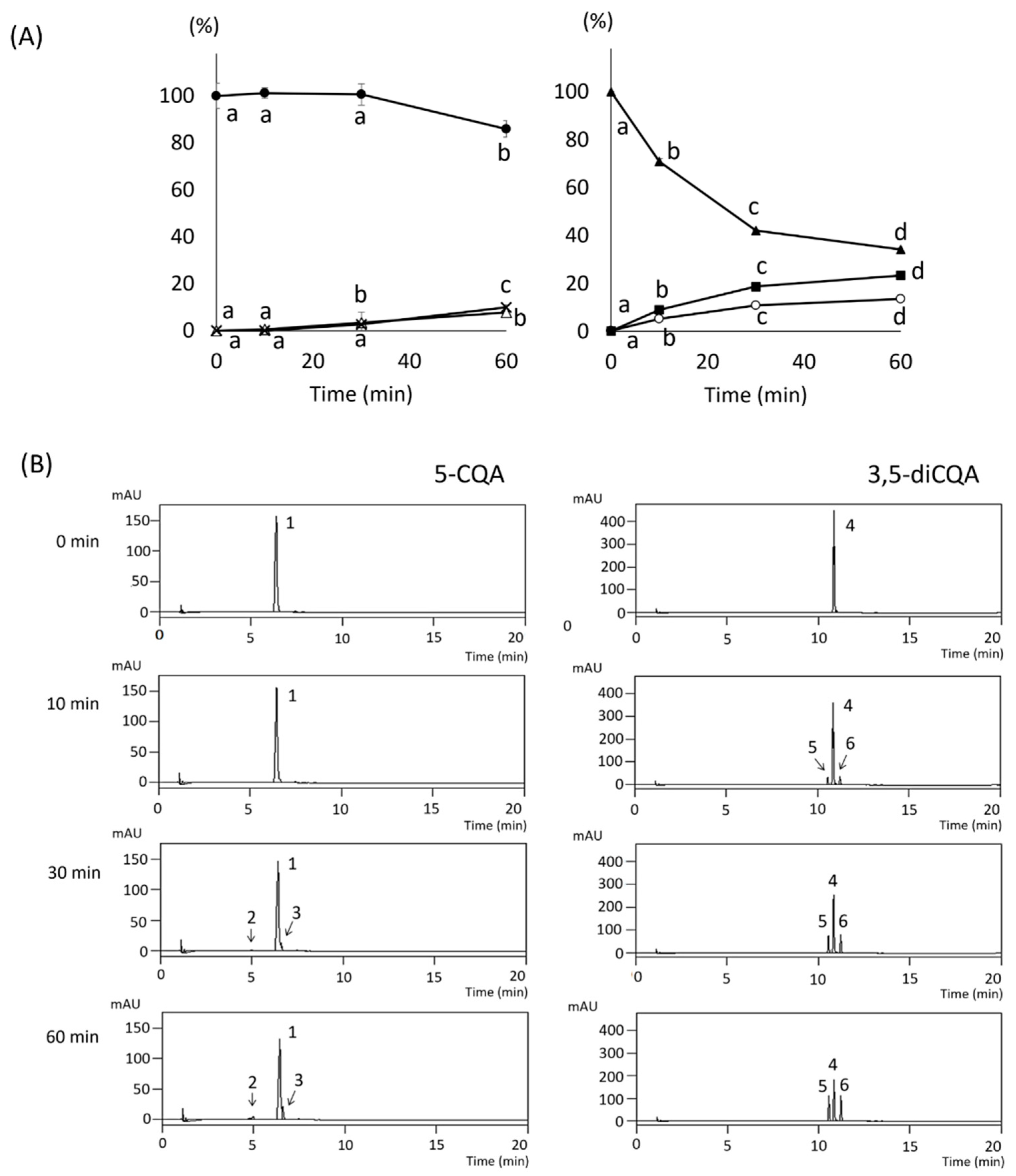 2.7. Heating of 5-CQA and 3,5-diCQA