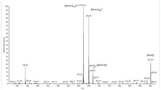 APCI-MS2 spectrum of [M+H]+ (m/z 951.7) for OEPADHA obtained from fish oil.