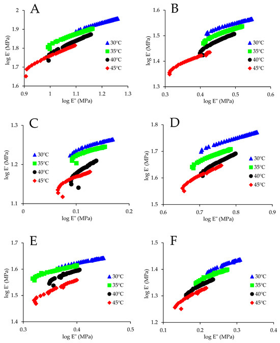 Modified Cole–Cole (MCC) analysis is another solution for the problem of the limited measurement frequency range of commercial instruments. For the MCC analysis, ITF data can be superposed without data manipulation compared with FTS [10]. When investigating thermorheologically complex and simple materials, MCC analysis’s failure and success for superpossibility is similar to FTS. Meza et al. [11] compared frozen and refrigerated cheeses for the MCC analysis, reporting that storage and loss moduli could be superposed in the range of 10–30 °C. Nevertheless, at temperatures above 30 °C, the moduli failed to superimpose. Ahmed et al. [12] reported that temperature did not exert a remarkable impact on the MCC plot of poly(ε-caprolactone) nanocomposites containing 10% clay. Wu et al. [13] employed MCC analysis to reveal the microstructure homogeneity and isotropy of polysaccharide from Sophora alopecuroides L. seeds. They reported that the results suggested the structural micro-heterogeneity of polysaccharide from Sophora alopecuroides L. seeds to some extent.