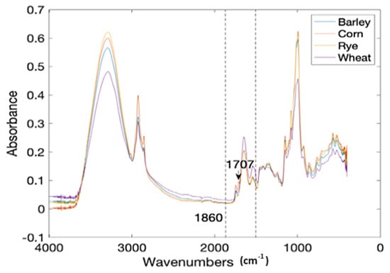 Figure 3. The mean FTIR spectra of four common flour samples [37].