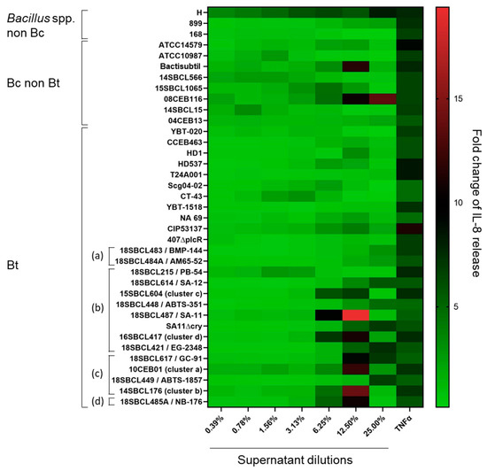 3.3. Pro-Inflammatory Effect of Bacillus spp. Supernatants