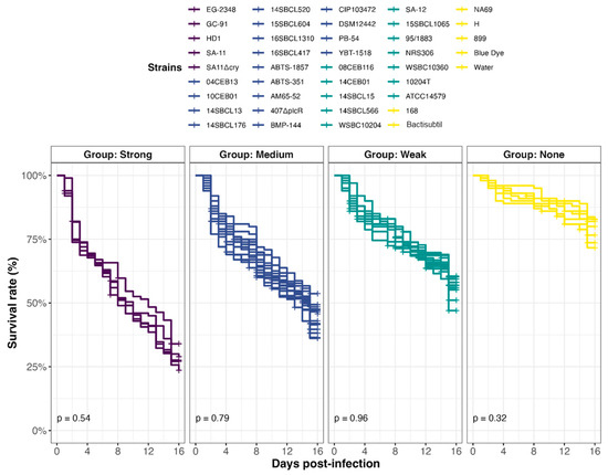 3.4. Effect of the Ingestion of Bacillus spp. Spores on D. melanogaster Lethality