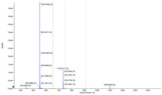RPTE2-2-4, characterized by stronger free radical scavenging activities, was identified using LC-MS/MS combined with the MASCOT V2.3 search engine. The amino acid sequence of RPTE2-2-4 was determined to be Leu-Phe-Lys-Lys-Asn-Leu-Leu-Thr-Leu (LFKKNLLTL) with a molecular weight of 1089.39 Da (Figure 3). Previous studies have indicated that the antioxidant properties of peptides are influenced by various factors, including molecular weight, amino acid sequence, and hydrophobicity of the constituent amino acids [41,42,43,44]. Antioxidative peptides typically exhibit structural characteristics such as relatively short peptide lengths (e.g., 3–16 amino acids), molecular weights ranging from 500 to 1800 Da, and the presence of hydrophobic amino acid residues in the sequence [45]. The presence of aromatic amino acids and/or hydrophobic amino acids, such as Tyr, His, Trp, Phe, Val, Leu, and Ala, has been suggested to be crucial for the antioxidant activities of peptides [45,46,47].