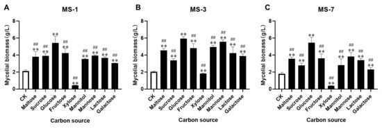 S. sanghuang show similar morphology, their requirements for carbon, nitrogen, and growth factors vary considerably. Our data showed that glucose was the optimal carbon source for the liquid fermentation medium used to grow
