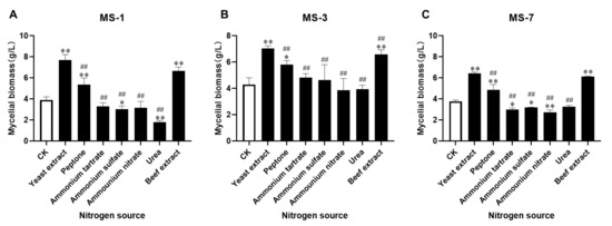 25]. Furthermore, our data showed that yeast extract was the most suitable nitrogen source for growing