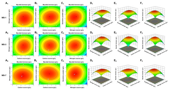 S. sanghuang. In this study, we comprehensively analyzed the effects of different carbon and nitrogen sources, as well as exogenous growth factors, to develop the optimal liquid-fermentation-media formulation for maximal mycelial yield. We also performed the response surface method optimization test using a Box–Behnken design to analyze interactions between various factors. Furthermore, we analyzed the antioxidant and anticancer activities of the extracellular polysaccharides from three strains of