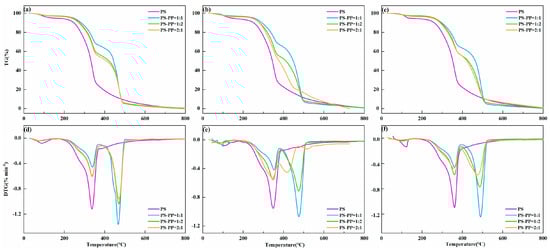 3.2.2. Co-Pyrolysis Behavior of PS1-PP1
