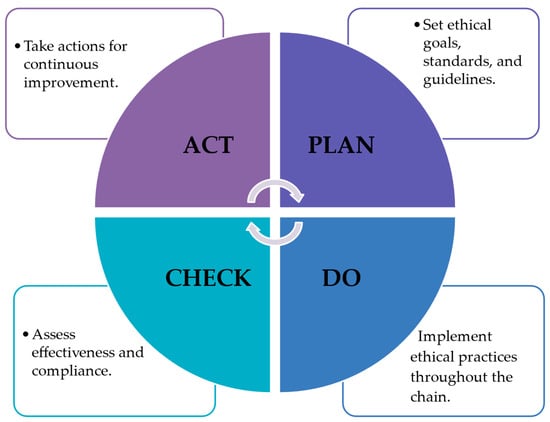 Act: Based on the findings from the check phase, actions are taken to address any gaps or deficiencies in ethical performance. This may involve revising policies, updating procedures, providing additional training, or implementing corrective actions. Continuous communication and engagement with stakeholders are essential to drive ongoing improvement and maintain ethical integrity throughout the food chain.