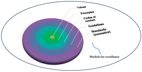 Ethical values dominate people’s lives [43,44,45]. Values can be defined as the sum of the positive/good properties that reflect the importance of a good person or thing, and these properties should be acquired and recommended [46,47]. There are different forms of values based on (1) material and economic issues, (2) politics, (3) social welfare (e.g., love, friendship, cooperation, and peace), (4) aesthetic conditions, (5) natural aspects of life (e.g., life, health, and nature), and (6) moral/ethical values (such as responsibility, honesty, conscientiousness, self-awareness, self-control, and dignity) [48]. The hierarchy of these values largely depends on the cultural environment [49] and may be understood differently both in terms of concepts of different values and significance [50,51]. Values in the food chain are not merely abstract concepts but are deeply embedded in the fabric of everyday life, influencing the actions and decisions of all stakeholders involved. Ethical values, as elucidated by Harris [52] and Kanungo [53], play a fundamental role in shaping the behavior and practices within the food industry. Within this framework, there exists a hierarchical structure of values, guided by rational or explicit rules set forth by the group, as noted by Landau and Osmo [54]. This hierarchy reflects the varying degrees of importance attributed to specific values within the broader system–society–culture complex, as highlighted by Jackson [50]. Particularly significant are the values that uphold the principles of human life, freedom, and justice, irrespective of contextual frames, as emphasized by Donnelly [55] and Schwartz and Bardi [56]. In the food chain, these values manifest in various forms, influencing decisions related to production methods, distribution practices, and consumer choices, thereby shaping the ethical contours of the entire ecosystem [55,56].