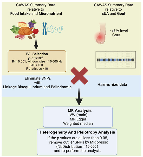 Analyzing processes (created with BioRender.com) (IVW, inverse-variance weighted; sUA, serum uric acid).