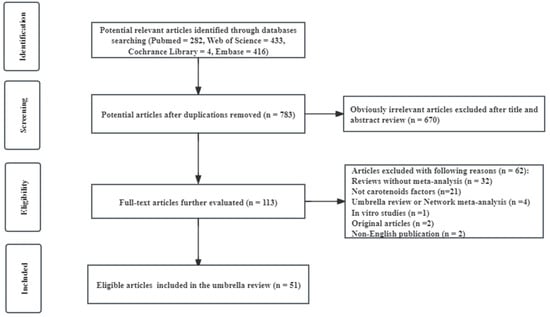 APA StyleSui, J., Guo, J., Pan, D., Wang, Y., Xu, Y., Sun, G., & Xia, H. (2024). The Efficacy of Dietary Intake, Supplementation, and Blood Concentrations of Carotenoids in Cancer Prevention: Insights from an Umbrella Meta-Analysis. Foods, 13(9), 1321. https://doi.org/10.3390/foods13091321