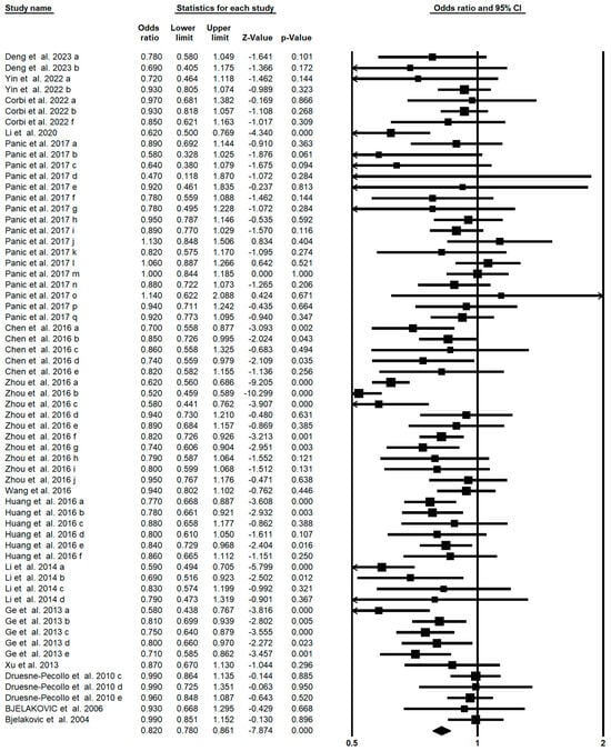 | Digestive system cancer | Carotenoids intake | 48 | 0.798 (0.754–0.844) | 0.683 (<0.001) |