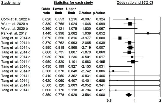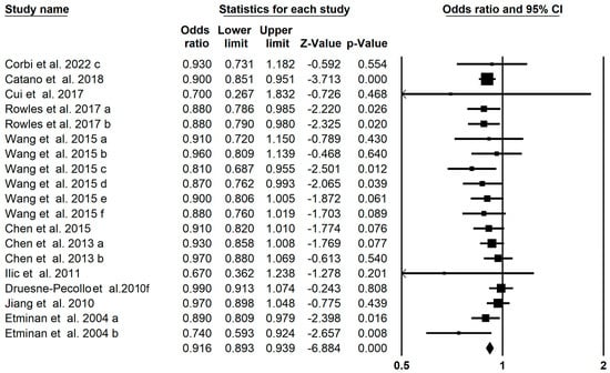 | lutein and zeaxanthin | 16 | 0.850 (0.797–0.906) | 0 (<0.001) | |