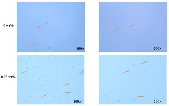 The sample (40 μL) was dropped onto a clean glass slide and observed using an optical microscope (CX31RTSF, Shanghai Dending International Trade Co., LTD, Shanghai, China) under magnifications of 100× and 200× [23].