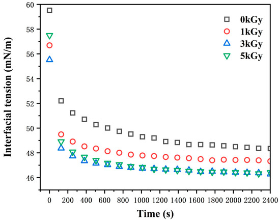 Effects of different irradiation doses (0–5 kGy) on interfacial tension (expressed as mN/m) of LEW samples.