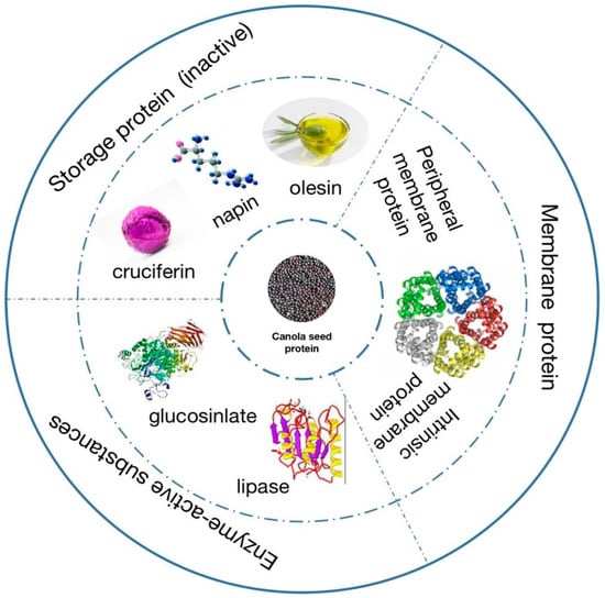 21]. The inactive storage protein in canola seed is composed of cruciferin (12S), napin (2S), and oleosin, which account for 60%, 20%, and 8%, of the total protein content, respectively [