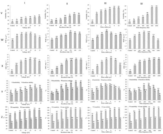 56]. However, in contrast to the WHC of treated canola seed protein, the OHC of canola seed protein was increased significantly with increasing pulse frequency and residence time of PEF treatment [