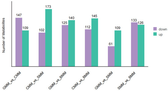 3.4. Identification of Characteristic Metabolites of Each Type of Milk