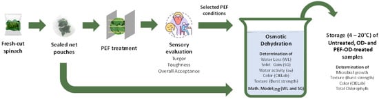 Experimental procedure for PEF-OD treatment of spinach leaves.