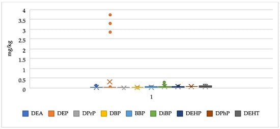 Box-plot illustrating the concentrations of plasticiser residues in Algerian honey.