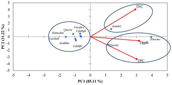 - Tohidi, B.; Rahimmalek, M.; Arzani, A. Essential oil composition, total phenolic, flavonoid contents, and antioxidant activity of Thymus species collected from different regions of Iran. Food Chem. 2017, 220, 153–161. [Google Scholar] [CrossRef] [PubMed]