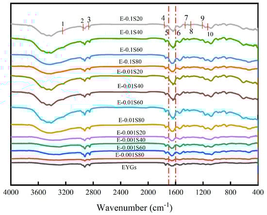 Infrared spectra of EYGs-Span emulsifiers with different compounding concentrations.