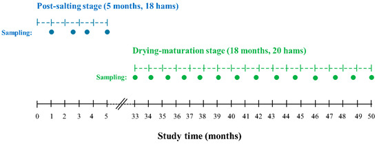 - Narváez-Rivas, M.; Gallardo, E.; León-Camacho, M. Chemical Changes in Volatile Aldehydes and Ketones from Subcutaneous Fat during Ripening of Iberian Dry-Cured Ham. Prediction of the Curing Time. Food Res. Int. 2014, 55, 381–390. [Google Scholar] [CrossRef]