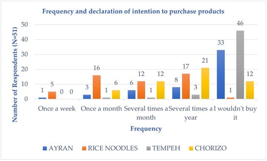Frequency and declaration of intention to purchase products by respondents (N = 51).