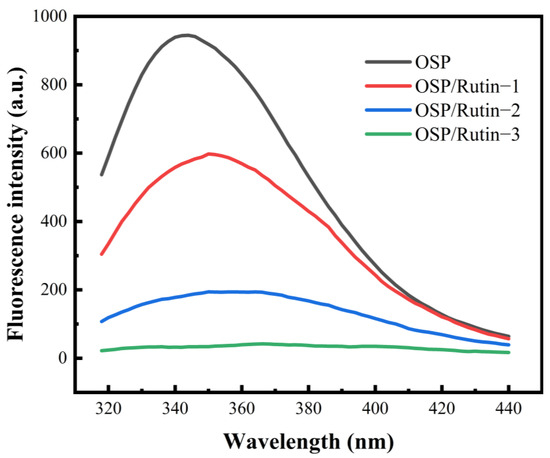 Intrinsic fluorescence spectra of OSP and the OSP/rutin covalent complexes.