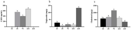 3.3. Content of Gamma-Aminobutyric Acid, Triglycerides, and Cholesterol in Muscle