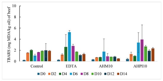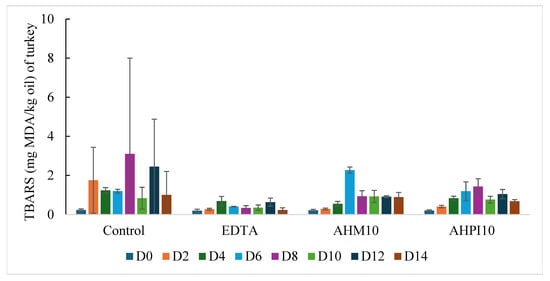 3.3. TBARS of Beef and Turkey Meatballs Under 14-Day Refrigerated Conditions