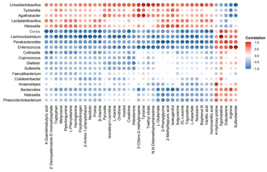 3.5. Correlations Between the Gut Microbiota Composition and Associated Metabolic Profiles