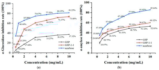 Inhibition rate of α-amylase (a) and α-glucosidase (b) by GSPs.
