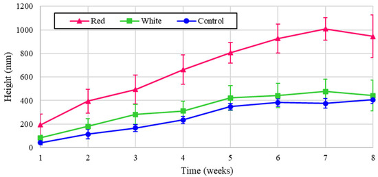- Brazaitytė, A.; Duchovskis, P.; Urbonavičiūtė, A.; Samuolienė, G.; Jankauskienė, J.; Sakalauskaitė, J.; Šabajevienė, G.; Sirtautas, R.; Novičkovas, A. The Effect of Light-Emitting Diodes Lighting on the Growth of Tomato Transplants. Zemdirb. Agric. 2010, 97, 89–98. [Google Scholar]