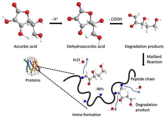However, the Maillard reaction produces more than just color: the reactions between amino acids, peptides, or proteins and reducing sugars also generate a wide range of flavor and aroma compounds. Many factors influence the reaction, such as temperature, time, water activity, pH, the type of amino acid and reducing sugars, and vitamin C degradation [1,2,3]. The reaction has an impact on the quality of heated foods, and its nutritional value.