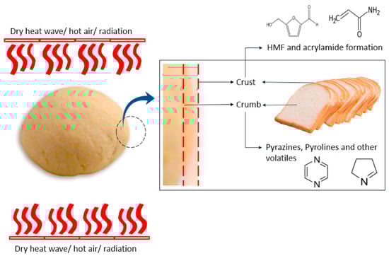 - Devu, S.S.; Dileepmon, R.; Kothakota, A.; Venkatesh, T.; Pandiselvam, R.; Garg, R.; Jambrak, A.; Mediboyina, M.K.; Kumar, M.; Rajkumar; et al. Recent Advancements in Baking Technologies to Mitigate Formation of Toxic Compounds: A Comprehensive Review. Food Control 2022, 135, 108707. [Google Scholar] [CrossRef]