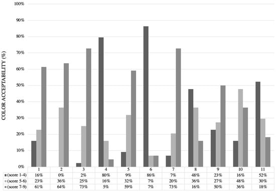 Color acceptability evaluation results for Peruvian carrot snacks after the frying process.