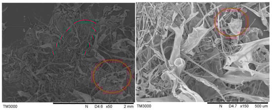 To further understand the effect of extraction methods on the structure of SLMPs, their microstructure was observed by scanning electron microscopy (SEM). As previously described [25], the microstructure of each material was characterized using an FEI Quanta 450 environmental SEM system (Thermo Fisher Scientific, Waltham, MA, USA) after the vacuum drying of the samples.