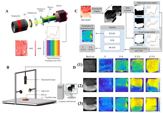 - Yu, Y.; Chen, W.; Zhang, H.; Liu, R.; Li, C. Discrimination among Fresh, Frozen–Stored and Frozen–Thawed Beef Cuts by Hyperspectral Imaging. Foods 2024, 13, 973. [Google Scholar] [CrossRef] [PubMed]