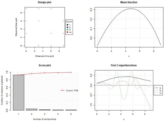 The scree plot analysis (Figure 2) indicated that two functional principal components were sufficient to capture approximately 95.90% of the total variance observed in the dataset. The first component (PC1) explained 92.44% of the total variance, while the second component (PC2) accounted for an additional 3.46%.